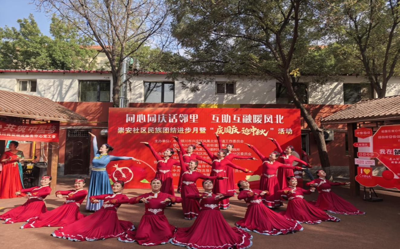 当中秋的明月遇上国庆的朝阳,当邻里的温情撞上民族团结的暖流,五星红旗与民族特色装饰交相辉映,空气中飘着月饼的香甜与居民的欢声笑语。2025年9月26日在国庆与中秋双节将至的喜庆时刻,崇安社区联合宁夏开放大学继续教育学院、宁夏社区教育指导中心在崇安社区唐徕小区二组团一场以“同心同庆话邻里,互助互融暖凤北”为主题的民族团结月暨双节庆祝活动,正在这里为各族居民开启一场“家”的聚会。