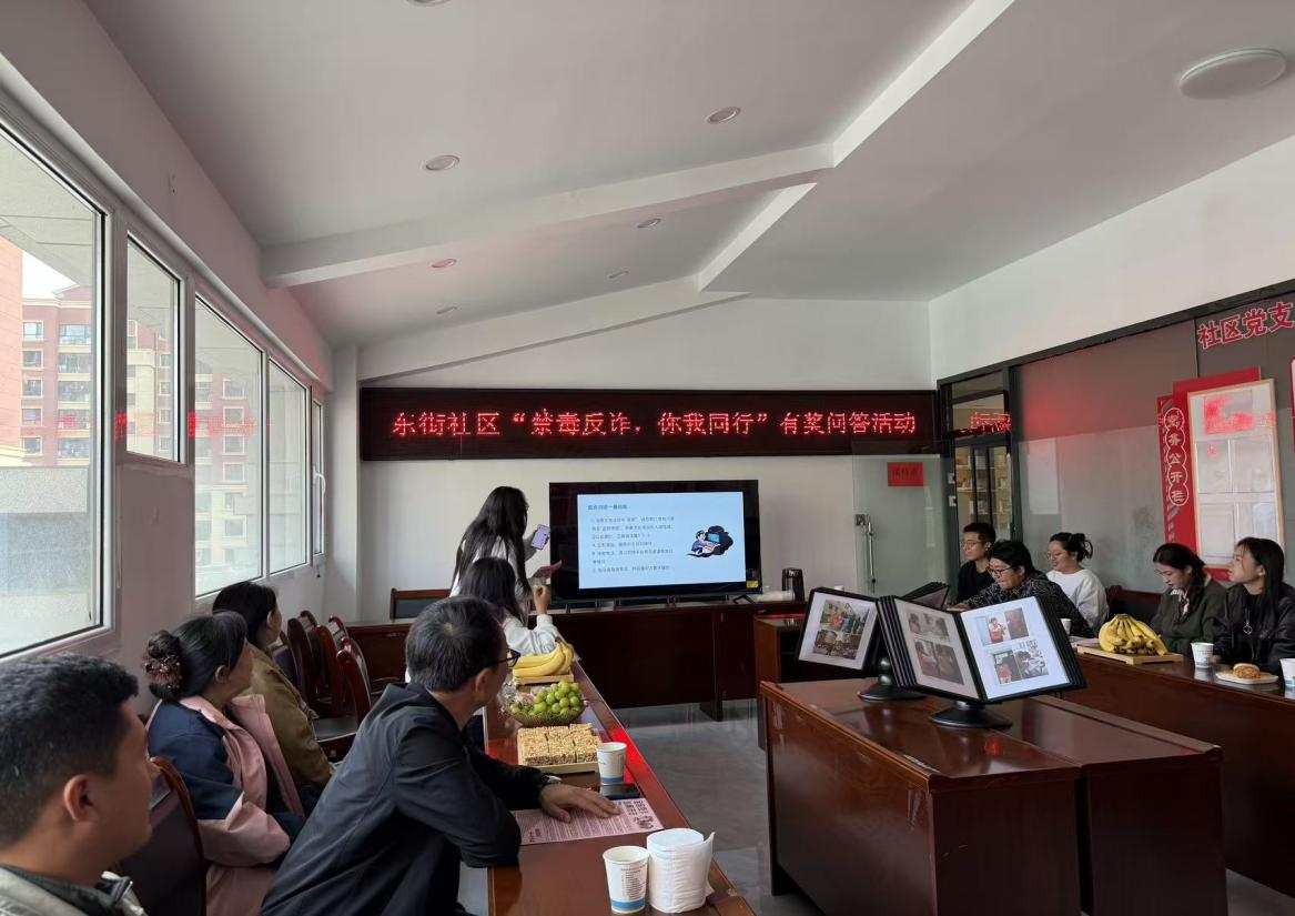 “禁毒反诈,你我同行”有奖问答活动。为增强居民安全防范意识,东街社区同步开展了禁毒反诈宣传活动。活动现场设置了禁毒知识展板、反诈案例展示区,吸引了大批居民驻足观看。活动采用有奖问答形式,通过寓教于乐的方式,有效提升了居民的安全防范意识。