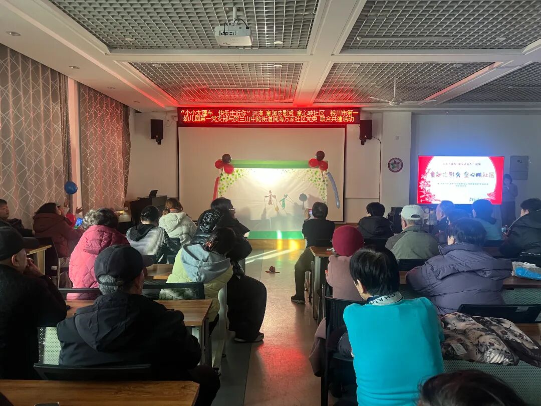12月11日,阅海万家社区教育示范点联合银川市第一幼儿园开展“非遗润童心,薪火永相传”代际交流活动,邀请辖区幼儿园孩童与老党员共同参与,在皮影戏与红色故事中搭建沟通的桥梁,实现了一老一小的温暖相遇与精神传递。